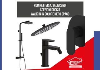 Novità del nostro marchio Energy Expert: articoli di Rubinetteria, Sistemi Doccia e Walk-in nel colore nero opaco.